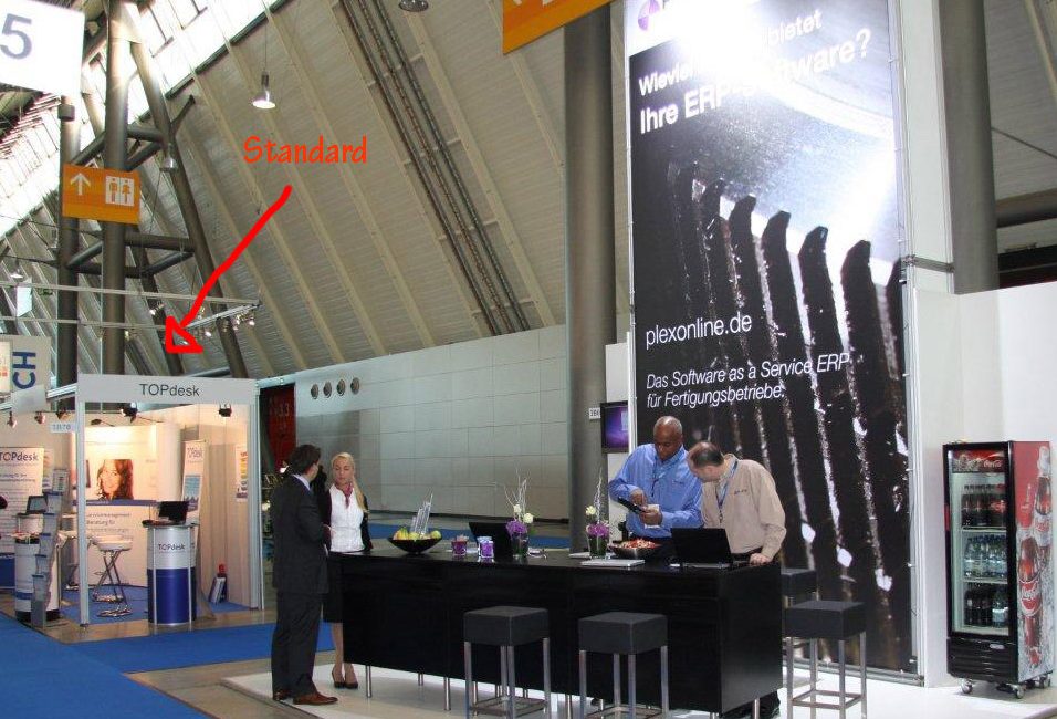 The site image was sent from the German coordinator, who pronounced the booth a complete success. The image includes a note showing the typical booth at the show, so this booth really stood out.