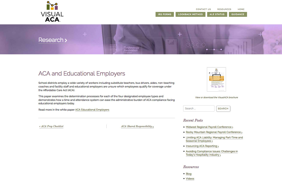The health care industry is required to submit complex worker reports on a regular basis. Data is tracked differently than employers are used to and can be overwhelming. VisualACA automates tracking and makes filing easier.